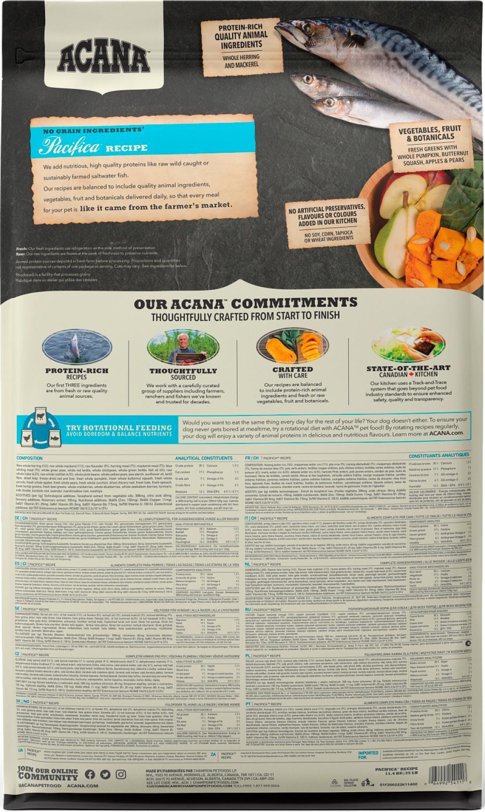 Læs mere om Acana Pacifica Dog - Bla. Ingredienser / Analyse / Kalorier & Fodring