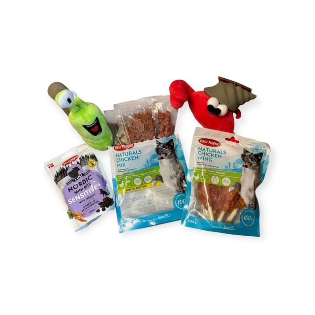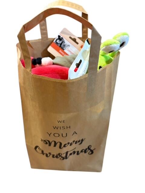 Årets julegave med lækkerier og legetøj. Der medfølger papirspose med flot juletryk.