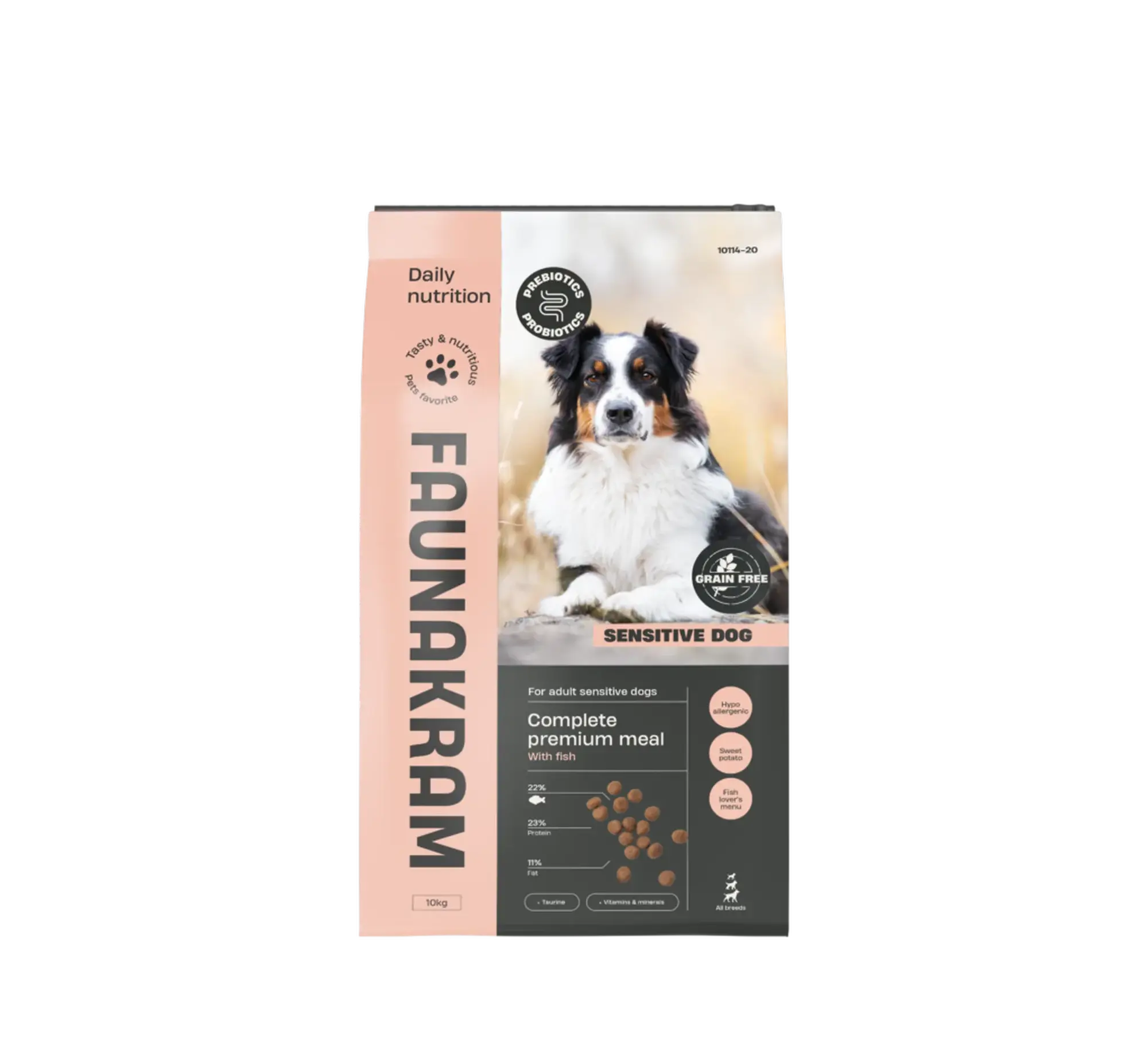 FRAGTSKADE - Faunakram Pre- & Probiotics Sensitive Dog Fish Grain Free, 10 kg - FRAGTSKADE