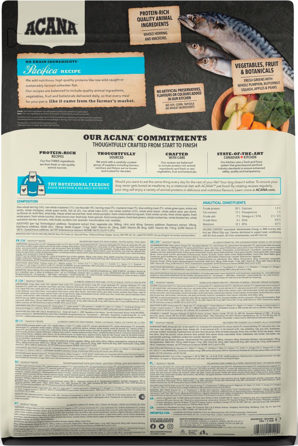 Læs mere om Acana Pacifica Dog - Bla. Ingredienser / Analyse / Kalorier & Fodring