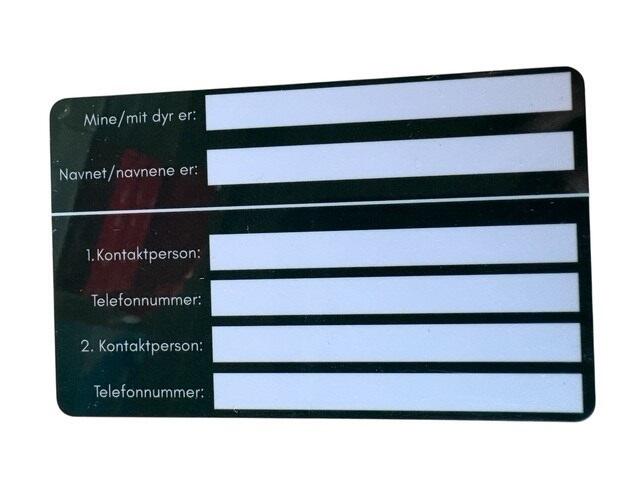 Med dette kort i pungen er du altid sikker på, at dit kæledyr er i gode hænder, hvis du kommer ud for en ulykke.