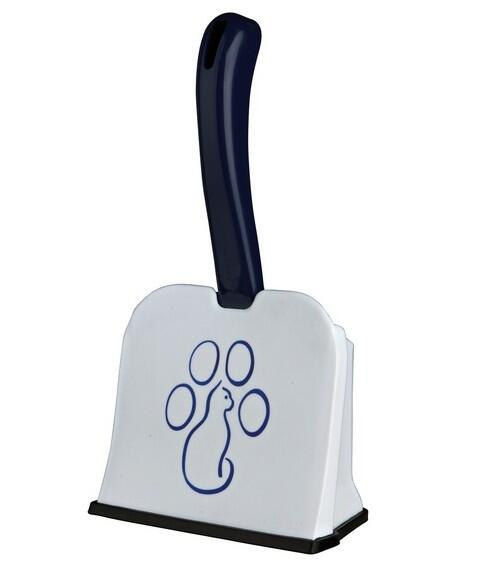 Skovl til kattegrus med smart og praktisk dekorativ fod, så skovlen altid står op og ser pæn ud.