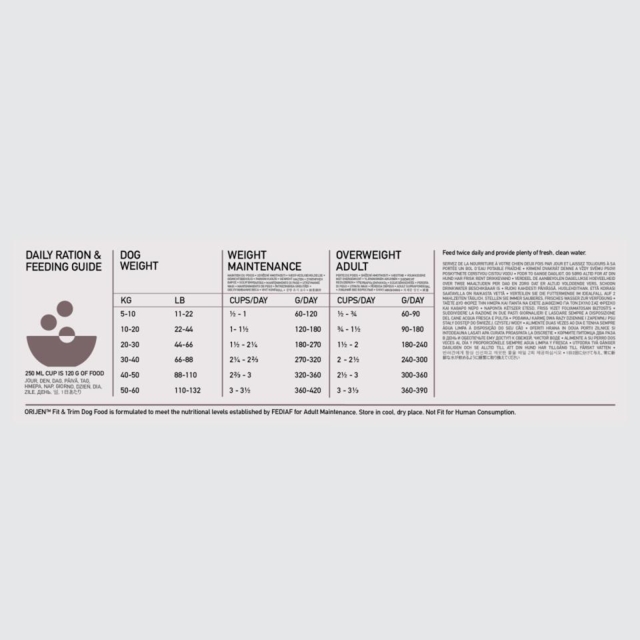 Overvægtige hunde kan med stor fordel drage nytte af en kost rig på protein for at understøtte en mager muskelmasse. Orijen Fit and Trim er med en begrænset mængde kulhydrater og kalorier.