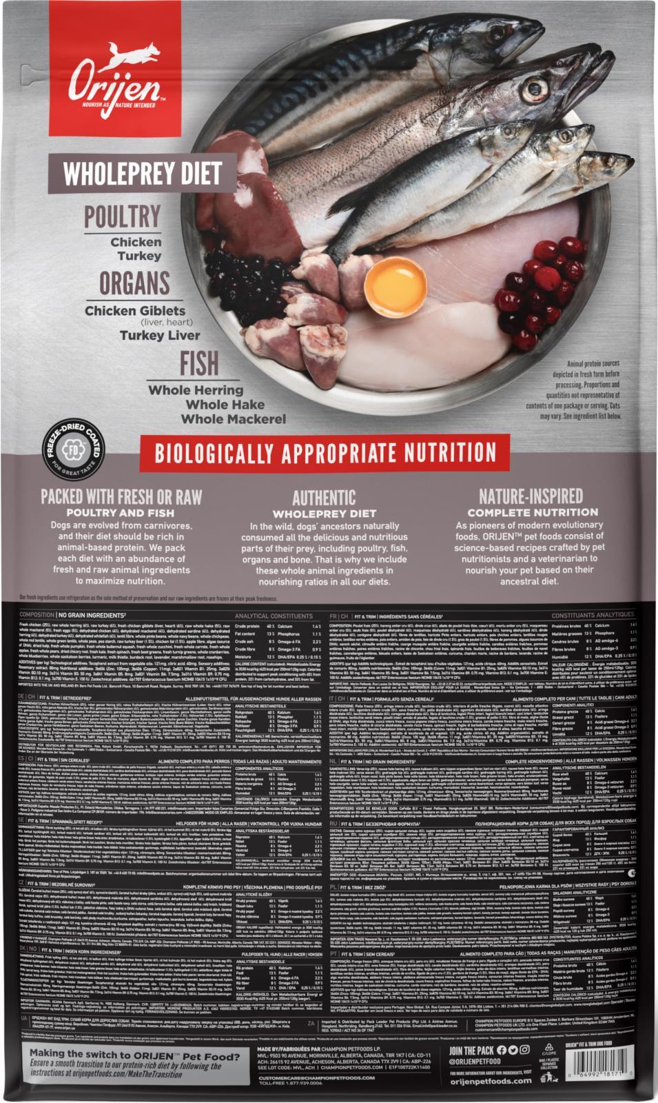 Orijen Fit and Trim er uovertruffen i forhold til andre slags "tør". Hundemaden fra Orijen består af 2/3 FERSK kød (kølet, ingen konserveringsmidler), indeholder de 10 bedste kødingredienser.