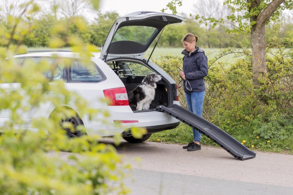 Smart folderampe til hunden, som den kan gå på, når den skal op i bilen. Leveres med ru belægning på gåfladen og er let at rengøre.