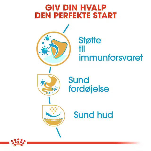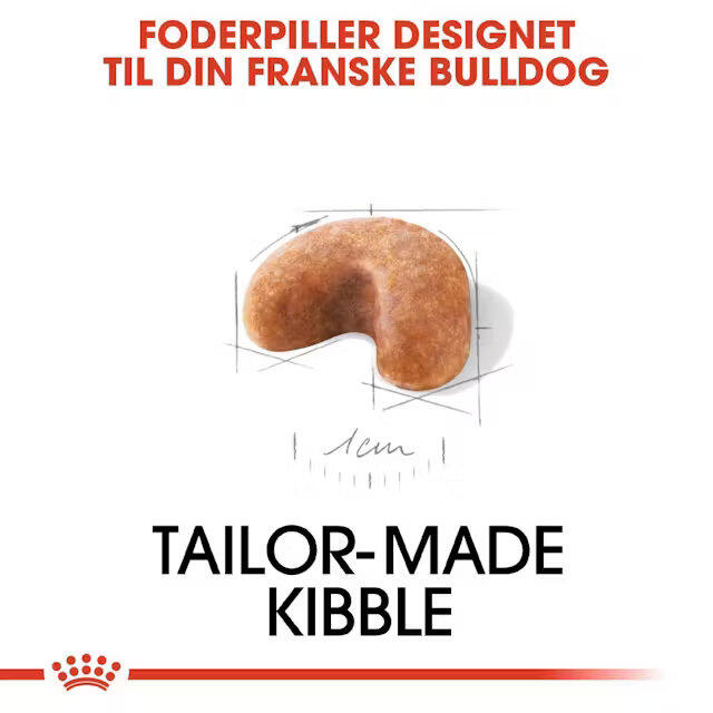Velegnet til hvalpe på op til 12 måneder. ROYAL CANIN® French Bulldog Puppy-tørfoder er specielt udviklet med alle din voksende hvalps ernæringsmæssige behov i tankerne. Takket være sit indhold af antioxidanter, herunder E-vitamin, hjælper foderet med at understøtte din hvalps naturlige forsvar, mens dens immunforsvar gradvist udvikler sig. Det indeholder næringsstoffer med proteiner af meget høj kvalitet, der er specielt udvalgte på grund af deres høje fordøjelighed (L.I.P.). Det indeholder endvidere yderst gavnlige præbiotika. Kombinationen af disse næringsstoffer hjælper med at understøtte fordøjelsessystemet. Derudover hjælper denne eksklusive sammensætning også med at understøtte hudens barrierefunktion. Foderpillerne i ROYAL CANIN® French Bulldog Puppy er udviklet specielt til din franske bulldoghvalp. Da denne race har en særligt kortskallet kæbe, er formen og størrelsen på foderpillen specielt tilpasset, så det er nemmere for din hvalp at samle foderet op. Derudover opmuntrer foderpillens konsistens din hvalp til at tygge foderet grundigt.