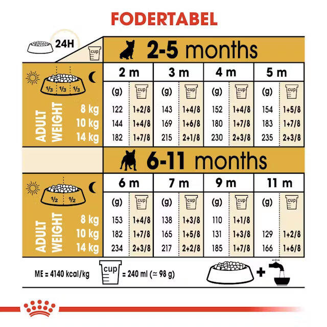 | 11 m | French Bulldog Adult | 129 g | 166 g |