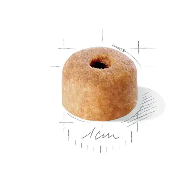 SAMMENSÆTNING: Tørret fjerkræprotein, majs, hvedegluten*, ris, majsmel, animalske fedtstoffer, majsgluten, hydrolyseret animalsk protein, hvedemel, roesnitter, fiskeolie, mineraler, vegetabilske fibre, sojaolie, fructo-oligosaccharider (0,5 %), psylliumskaller og -frø, gær (kilde til mannan-oligosaccharider og betaglukaner), glucosamin fra fermentering, boragoolie, fløjlsblomstmel, Yucca schidigera-saft, hydrolyseret brusk (chondroitinkilde). *L.I.P.: Protein udvalgt for dets meget høje fordøjelighed.
