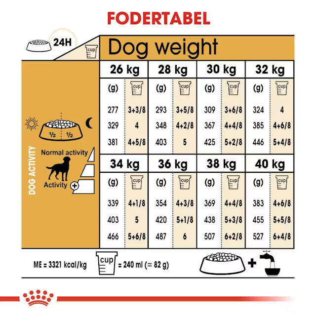Velegnet til voksne hunde over 15 måneder. ROYAL CANIN® Labrador Retriever Sterilised-tørfoder er specielt udviklet med alle din voksne labradors ernæringsmæssige behov i tankerne. Sterilised-foderet hjælper med at opfylde de specifikke ernæringsmæssige behov hos steriliserede/kastrerede, voksne labradorretrievere som din takket være et øget proteinindhold (30 %) og et reduceret fedtindhold (11 %). Det indeholder også L-carnitin, som er en aminosyre, der spiller en vigtig rolle for fedtreservernes funktion i forbindelse med energiproduktionen i cellerne.