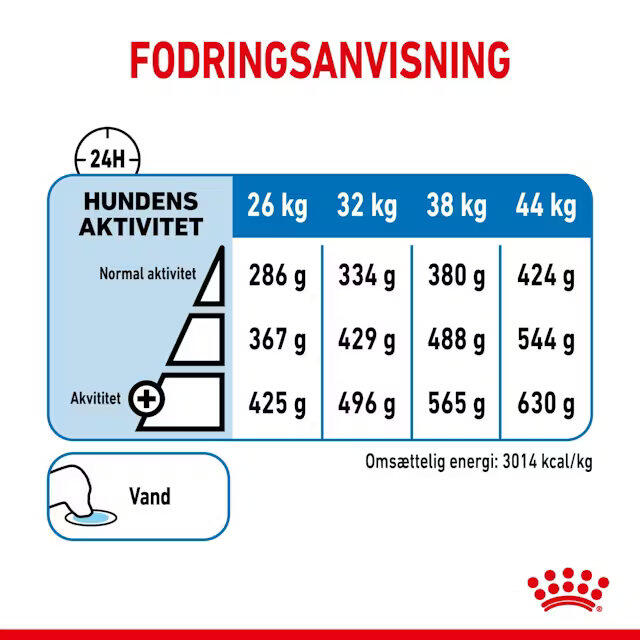 Mange kæledyr er overvægtige, hvilket udgør en ekstra belastning for deres knogler og almene sundhed. Kalorieindtaget kan nemt reduceres ved at give hunden en mindre mængde af dens almindelige foder. Men selvom den måske taber sig, kan det samtidig føre til underernæring. Vores vægtbevidste foder kombinerer et tilpasset kalorieindhold med et højt næringsindhold. Få en slank hund ved hjælp af vores komplette, velsmagende og sultstillende ernæringsløsning. Velegnet til hunde med en ideal vægt mellem 26 kg og 44 kg. ROYAL CANIN® Light Weight Care Maxi hjælper med at holde din hund let til bens. Når det samlede kalorieindtag begrænses, medfører det normalt også et begrænset proteinindtag. Det betyder, at dit kæledyr taber muskelmasse i stedet for fedt. Men alt foder fra Royal Canin indeholder yderst letfordøjelige proteiner.