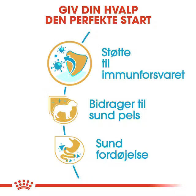 - Støtte til immunforsvaret: Din hvalps vækstperiode er en meget vigtig fase i dens liv; det er en tid med store forandringer og nye opdagelser. I løbet af denne periode udvikles din hvalps immunforsvar gradvist. Derfor indeholder produktet antioxidanter, der understøtter din hvalps naturlige forsvar, efterhånden som den vokser.