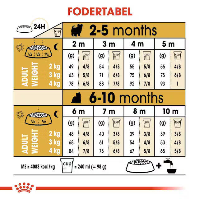 FODRINGSANVISNING: Se tabel. Batch- og fabriksregistreringsnummer samt Udløbsdato: Se pakken. Opbevares køligt og tørt.