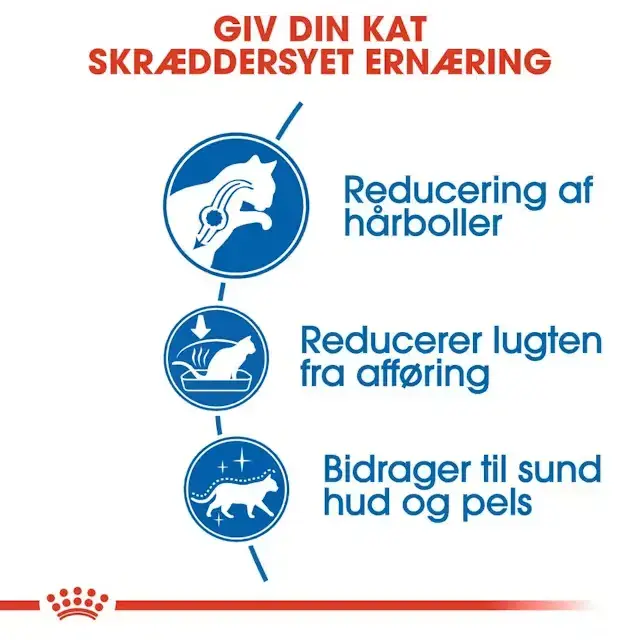 ROYAL CANIN® Indoor Long Hair-tørfoder er specielt udviklet med alle din langhårede indekats ernæringsmæssige behov i tankerne. Indoor Long Hair-tørfoder til katte hjælper med at stimulere tarmpassagen på en naturlig måde. Dette er yderst gavnligt for langhårede katte, da det hjælper med at reducere forekomsten af hårboller.