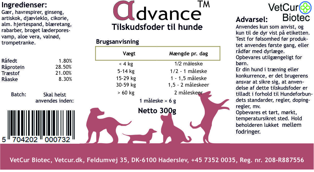 Vetcure Advance, 300 g pulver, til voksne og ældre hunde